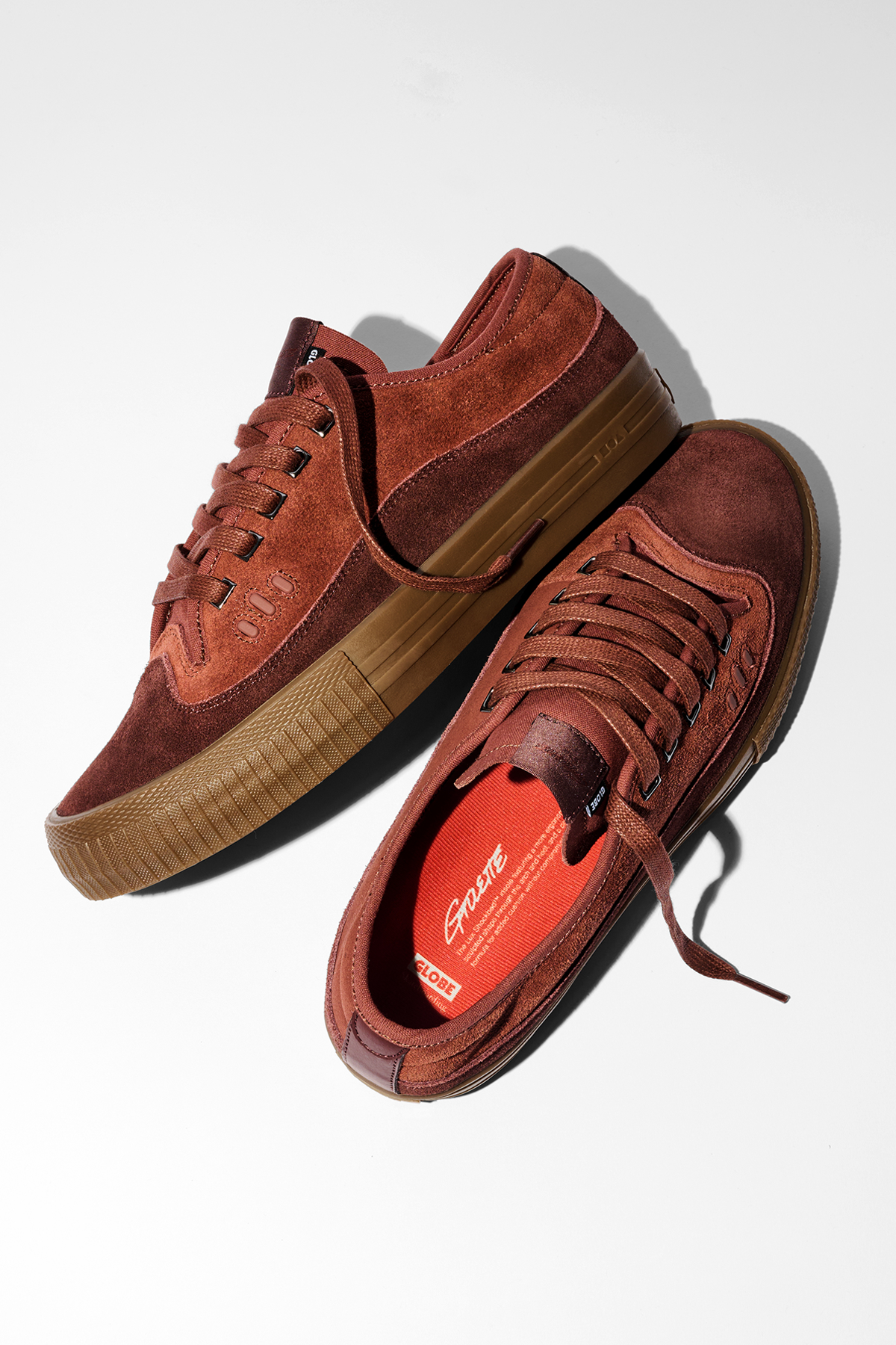 Austyn’s attention to detail is apparent in his pro shoe, from the unique upper design including rubberized ollie tri-dots as a nod to Globe’s heritage, to the customized Lux PU insole. This season a full suede wrap replaces the PU resin rand to provide a more organic and tactile material palette.
